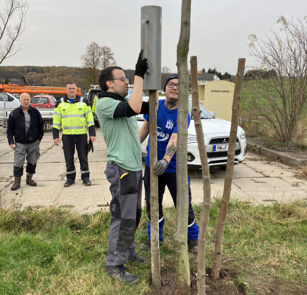 So wurde ein Grünstreifen entlang der Kreisstraße bei Stein mit vier großen Linden und neun Obstbäumen bestückt, um die Lücken einer großen Allee zu schließen. Dadurch können die angrenzenden landwirtschaftlichen Flächen und Lebewesen besser geschützt werden. Ebenfalls in Stein kamen acht Linden in den Boden, um diesen Ort naturnaher zu gestalten. Und auch auf der Rochlitzer Muldeninsel wurde aufgeforstet: Neun Buchen spenden zukünftig Sportlern entlang eines Bewegungspfades an heißen Sommertagen Schatten und Abkühlung. Ein großes Dankeschön geht an alle fleißigen Helfer!