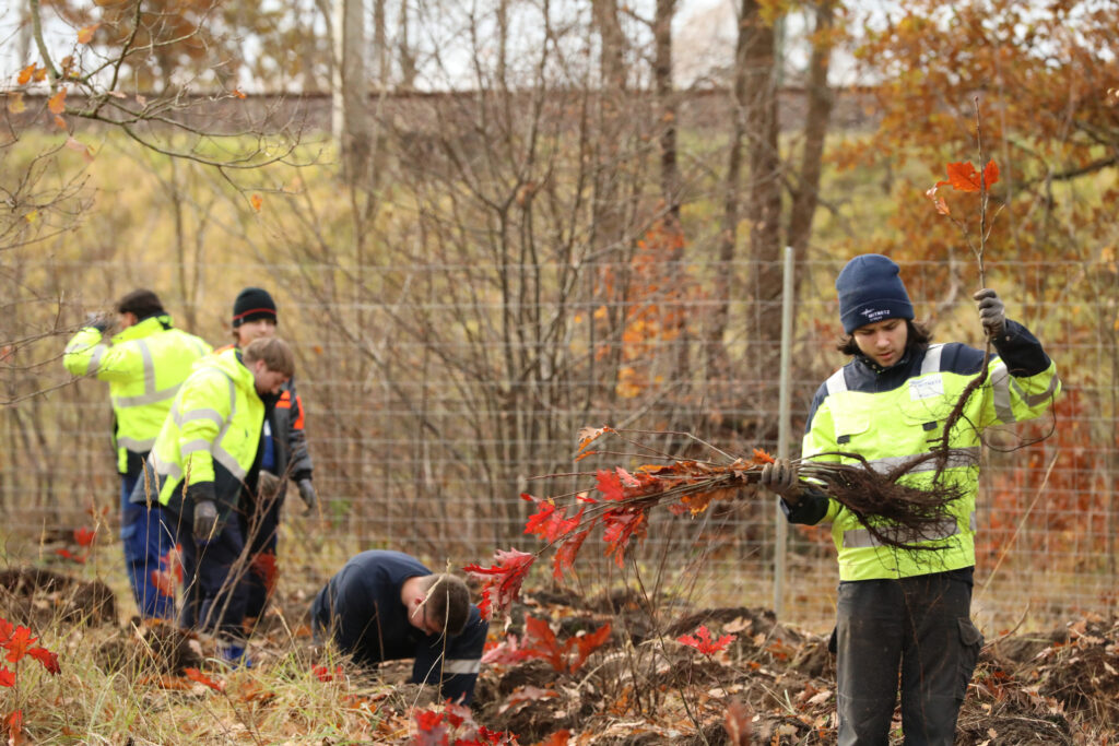 Für die enviaM-Gruppe ist Ostdeutschland weit mehr als ein Versorgungsgebiet, es ist unsere Heimat. Daher engagieren wir uns leidenschaftlich für die Region. So war die Stadt Falkenberg/Elster im Oktober 2023 Schauplatz einer großen Pflanzaktion. Mehr als 260 Auszubildende der enviaM-Gruppe pflanzten gemeinsam mit Vertretern der Stadt rund 15.000 Bäume. Insgesamt wurde eine Fläche von zwei Hektar Land aufgeforstet – was etwa drei Fußballfeldern entspricht.