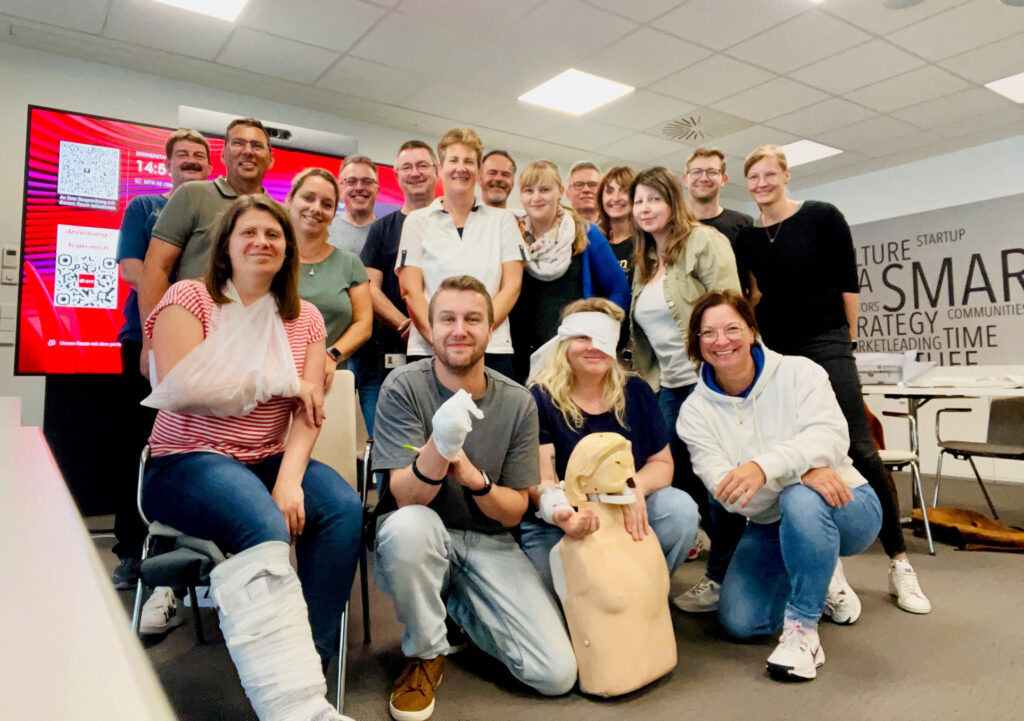 Der Gedanke dahinter ist einfach: Erste Hilfe soll kein Spezialwissen sein, sondern eine Fähigkeit, auf die jeder im Ernstfall zurückgreifen kann – im Job genauso wie im privaten Umfeld. Daher erhalten alle unsere Mitarbeiter eine umfassende Schulung.